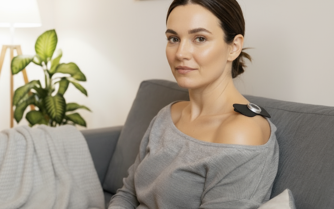 Hydrogel sticky pads make sure that the device is placed on the skin without irritating it, and a long-lasting battery lets you use it for a long time without having to charge it often.